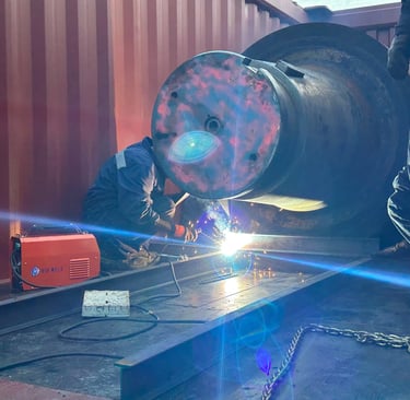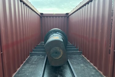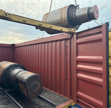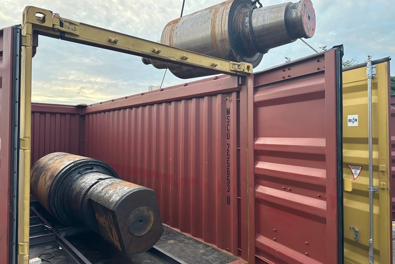 Ref: Shown above is a de-stuffing, floorboard repair, re-stuffing & lashing operation of a solid metal cargo that had damaged the floorboards of its initial container, we carefully, placed this cargo in a new container, and added extra support to its floorboards so that it can bear the substantial weight until it reaches its intended destination.